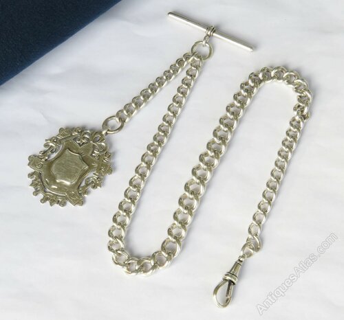 Antique Silver Watch Chain And Fob