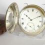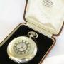 Antique silver Syren half hunter pocket watch, 1920.The watch has a Revue Thommen stem-winding movement which is working nicely. This is a good quality movement with screw-set jewels and snail cam micro regulator. The movement is signed Syren, a brand name registered by Revue Thommen. The movement is protected by an inner hinged cover which has a little scratching.