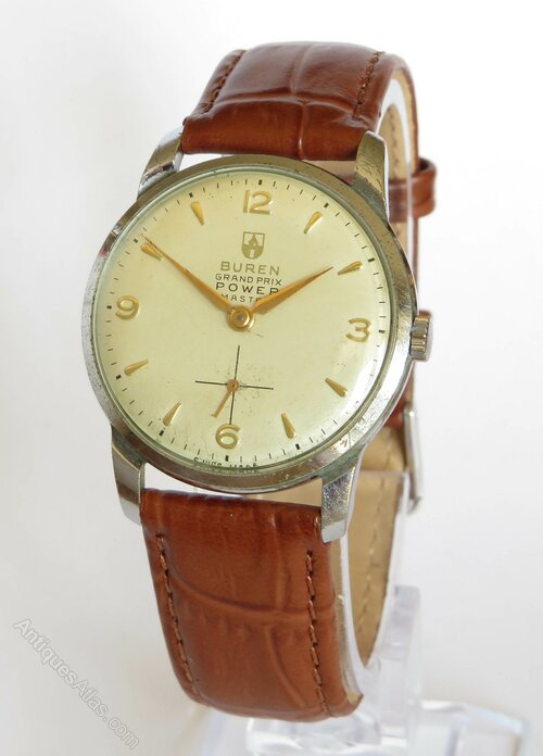 Gents 1950s Buren Grand Prix Power Master wrist watch.The watch has a calibre 410 15-jewel hand-winding movement which is working nicely. The movement is signed with the Buren Grand Prix name.