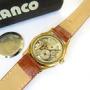 The watch measures 32.5mm diameter excluding the lugs and the winding crown. The case is gold plated and is stamped LWC for Langendorf Watch Company. The front of the case is in lovely condition, there is some wear to the plate on the back of the watch. The back of the watch states that the watch is water resistant but, as with any vintage watch, it should be kept away from water and moisture.