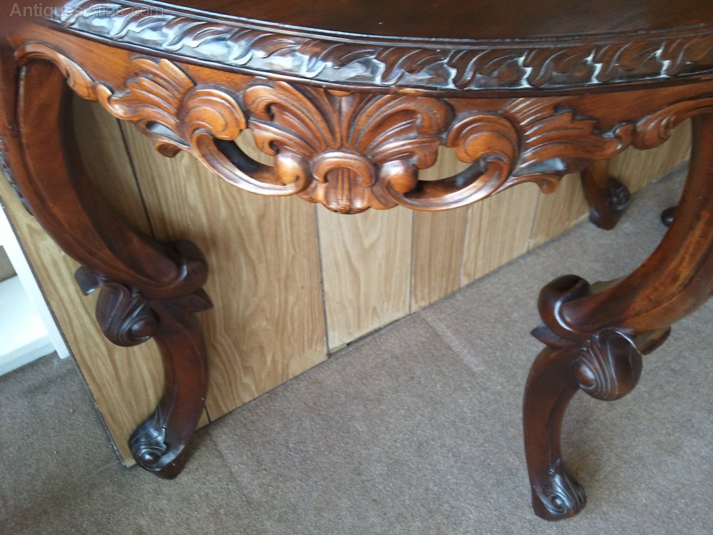 An Exquisite Hall Table, beautifully and heavily Carved. A Craftsman's piece from the Victorian days. Circa 1870. Ready to grace any Hallway.This measuresin height approx 95cm--in width 42cm and in length 87cm.After 40 years in Antiques. Failing health means closure. ALL STOCK MUST GO. Up to 50% discount, BUY NOW!