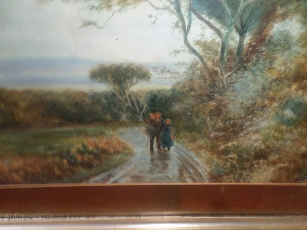 A very nice Victorian Watercolour Painting 'ON THE WAY HOME' depicting people along a lane in a Blustery gale day--Look at the tree--how that has been blown by the wind for years! Lovely to look at even though it might make one feel cold! It is its Original Frame. REDUCED PRICE NOW!After 40 years in Antiques. Failing health means closure. ALL STOCK MUST GO. Up to 50% discount, BUY NOW!