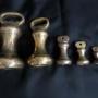 A Set of Shop Weights. Made in Brass and Range from 1lb to 1/4 Oz if one remembers the Grocery shop in bygone days (1940's & 1950's) when things were weighed out and put in paper bags! But don't WEIGHT for these--Buy now!After 40 years in Antiques. Failing health means closure. ALL STOCK MUST GO. Up to 50% discount, BUY NOW!