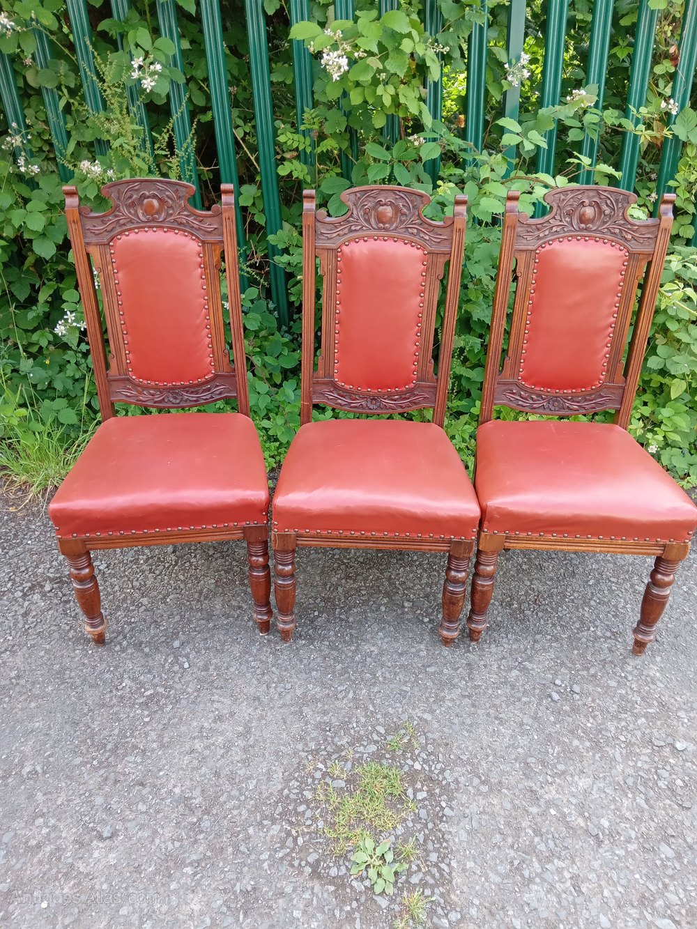 Here are some beautiful Mahogany/Red Leather Chairs. Suitable for small Boardroom (they came from one)-Dining--Hotel or wherever you feel fit to place them. There are 6 beautiful chairs, in excellent condition for their age. They will look good in any Country House Hotel or home Dining room.Great value at £300 the set! PRICE REDUCTION and FREE DELIVERY IN THE UK MAINLAND!