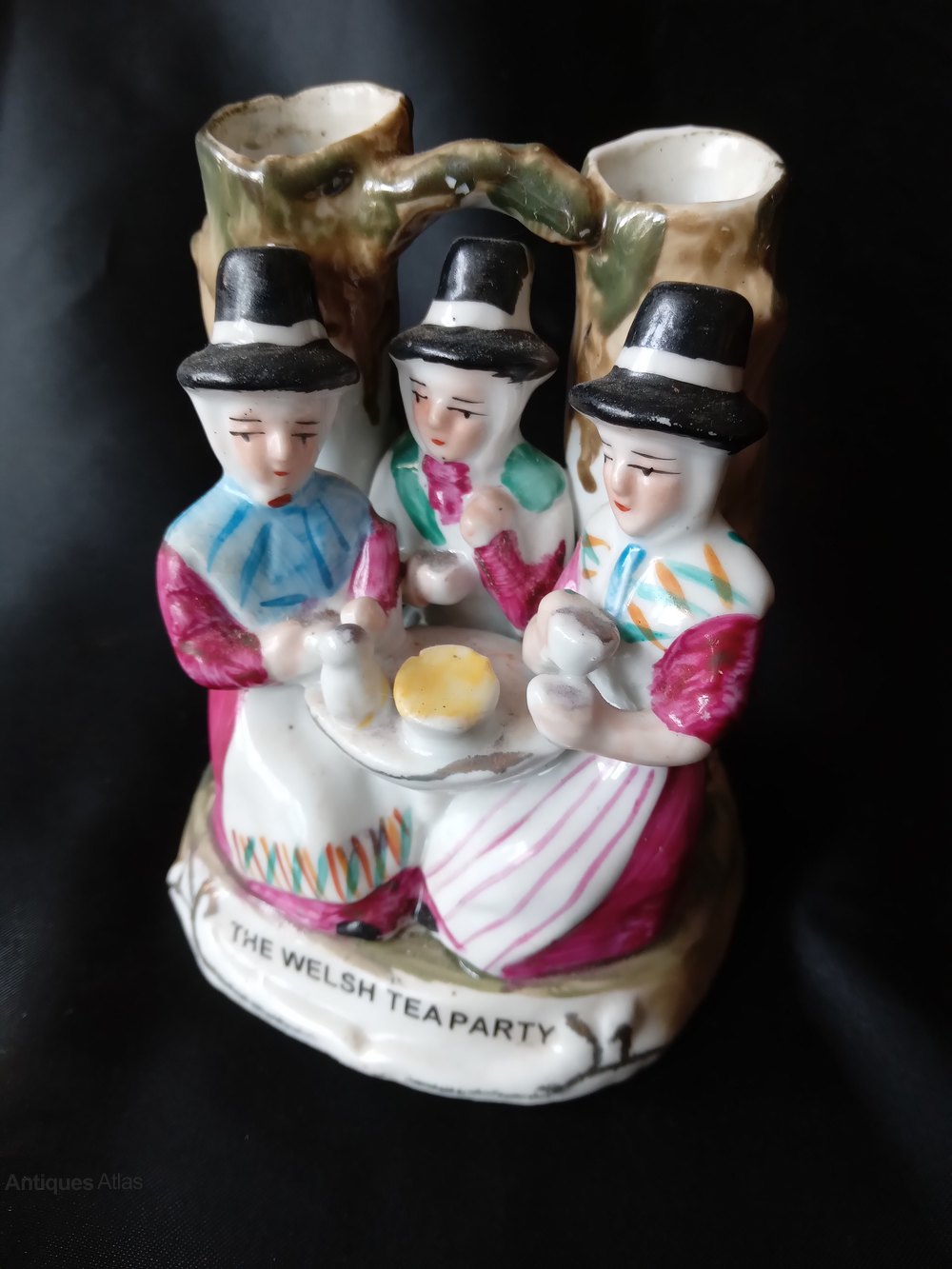 Here (sadly not marked with maker's name) is a very nice Fairing (or Spill Holder) which would sit on the Mantel Piece over the Fire with Spills ready to be used to light the fire. In the form of Welsh ladies enjoying tea time. Nice and very reasonable priced.After 40 years in Antiques. Failing health means closure. ALL STOCK MUST GO. Up to 50% discount, BUY NOW!