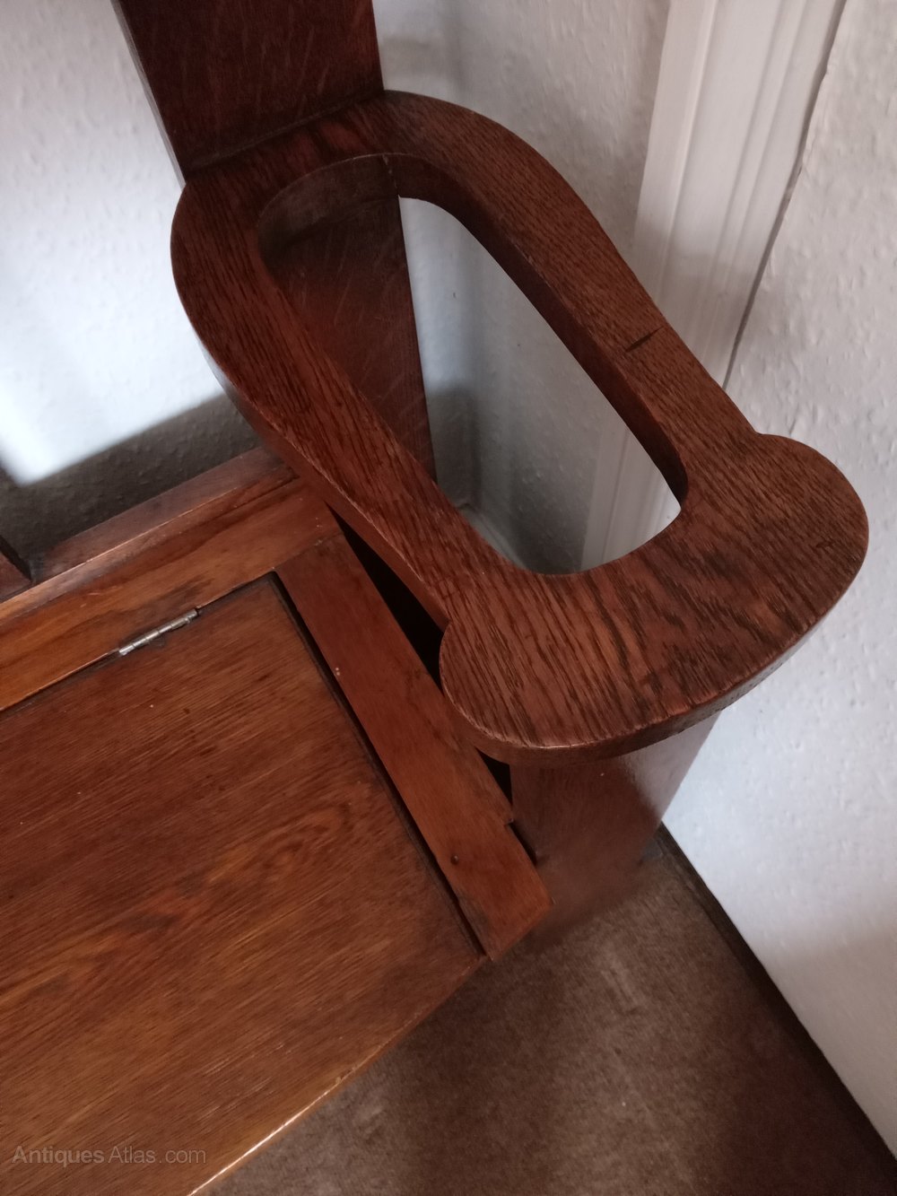 This is a truly Superb Oak Hall Stand--it would suit any Home, Guest House, Hotel, Restaurant etc. etc. etc. Either side of the Seat and formed as an Arm Rest are 2 Stick Stands for Walking Sticks and Umbrellas. FREE DELIVERY IN THE UK!