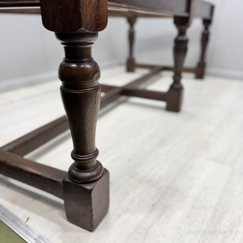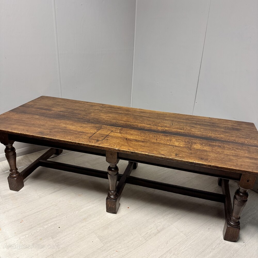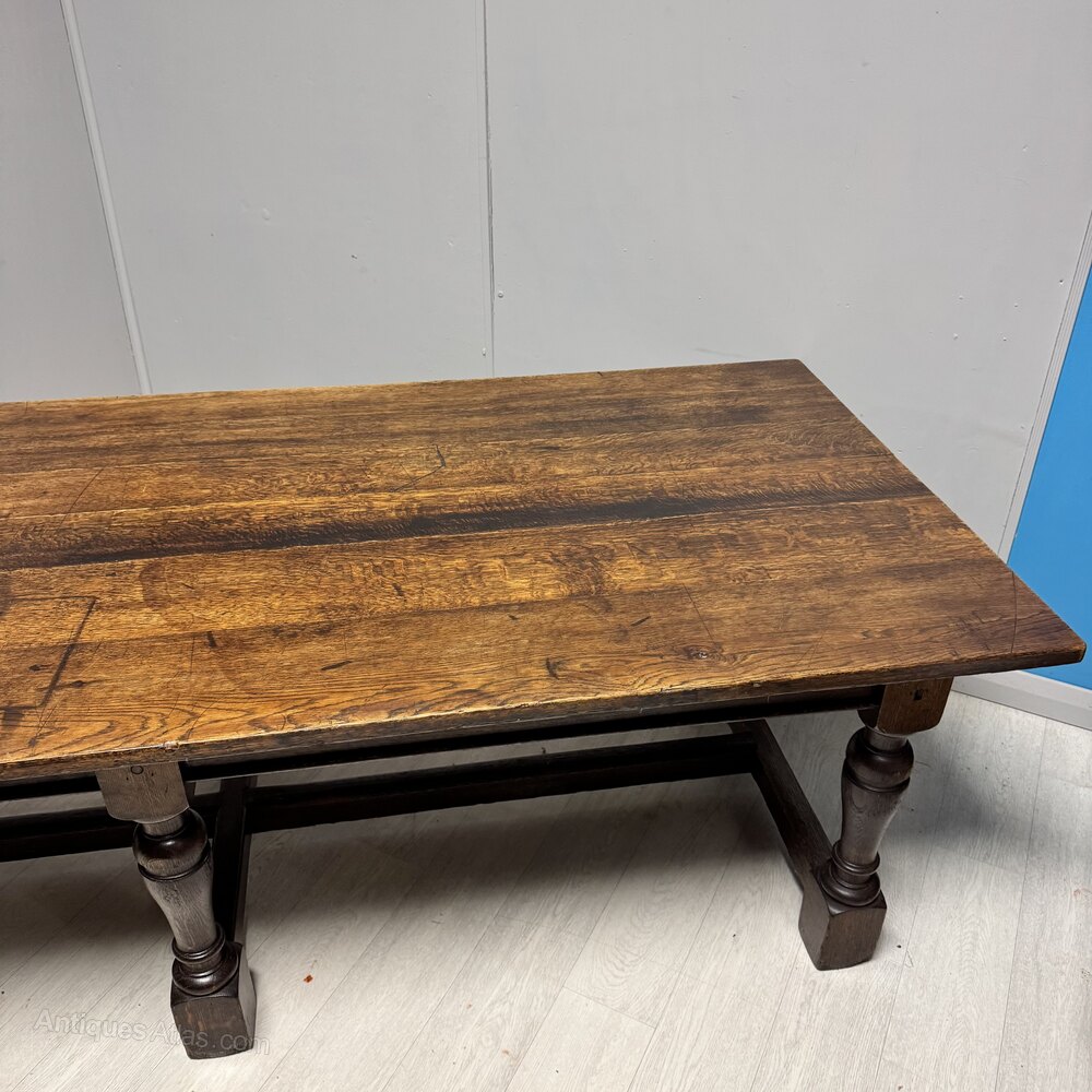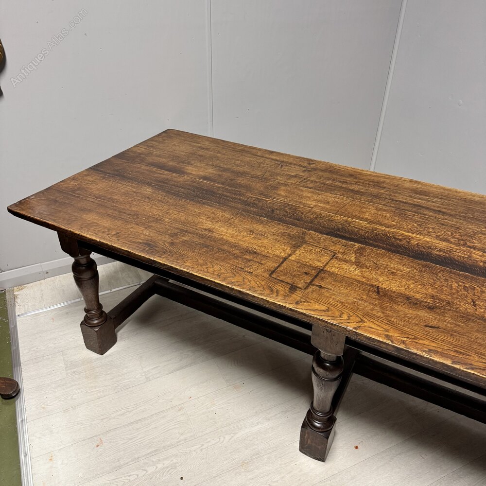 Some lovely oak grain to the table top and the refectory base is well carved and all of a good colour.