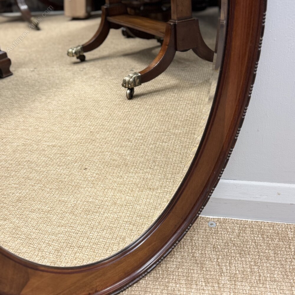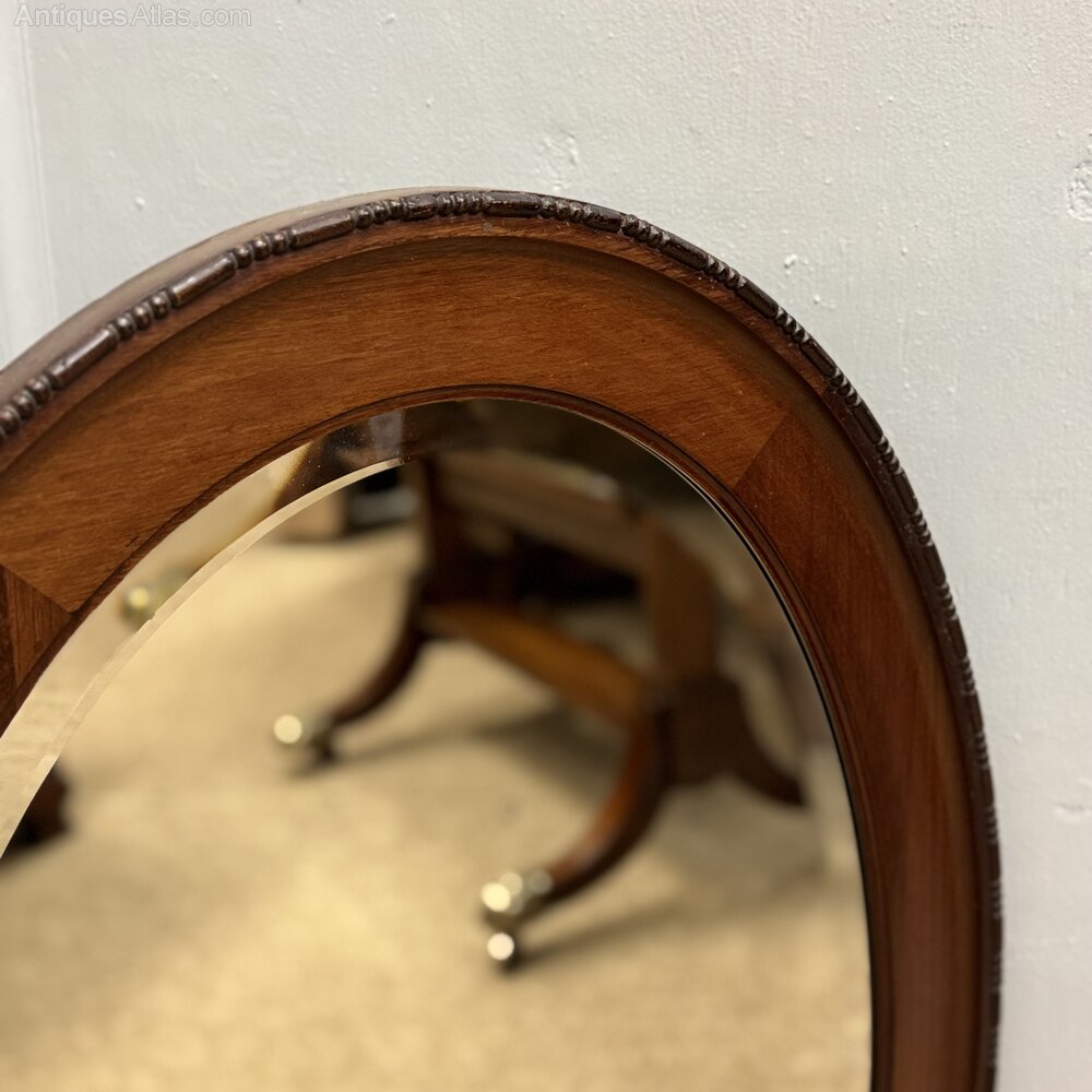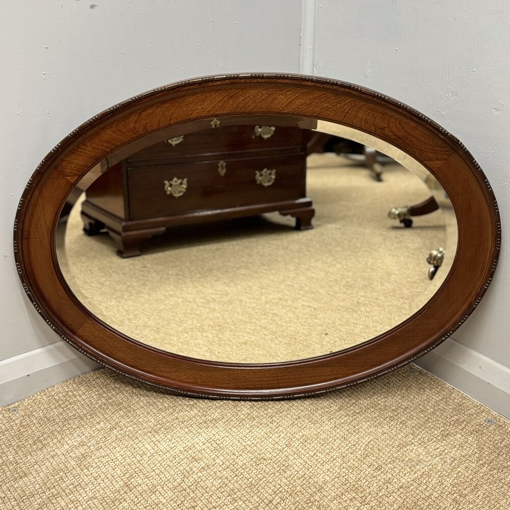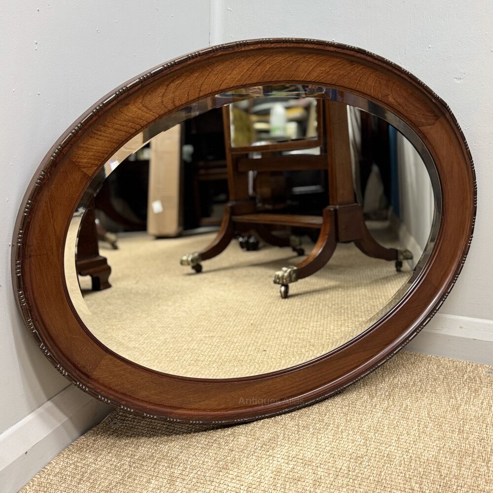 Oval Mahogany Framed Mirror With Bevelled Glass