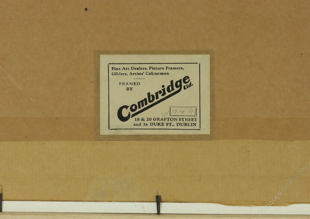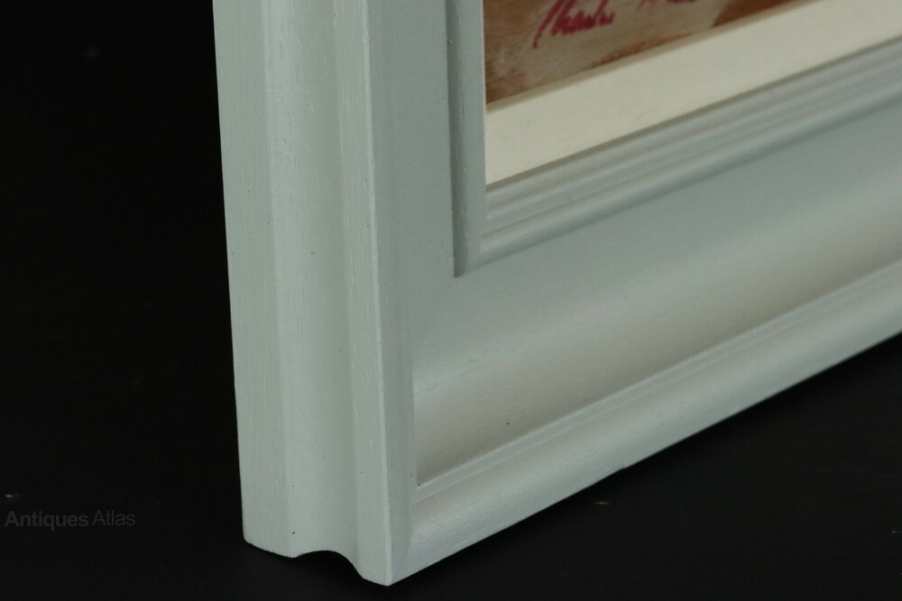 Condition: The painting has been reframed in a bespoke hand-painted wooden frame with inner ivory coloured wooden slip. The wide outer frame has been finished with several coats of Farrow & Ball Lamp Room Gray Estate Eggshell for interior wood. The framer's label was removed from the original frame (now discarded due to poor condition) and re-attached to the reverse.
