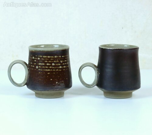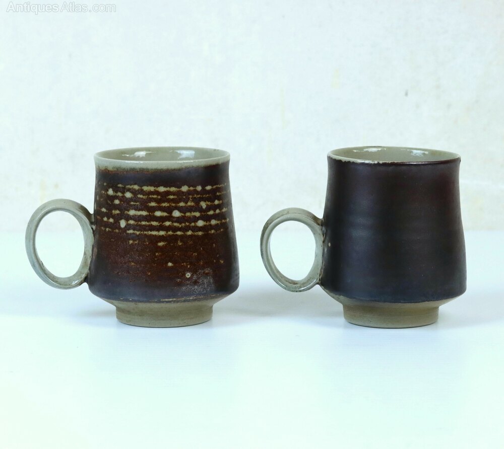 A pair of salt glaze stoneware coffee cans by Guy Sydenham c1970s in excellent condition.Makers marks: Impressed 'G.S', Green Island