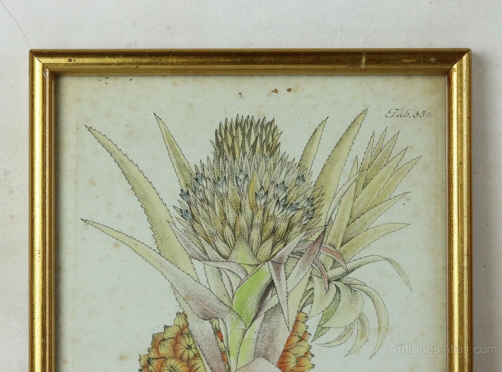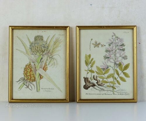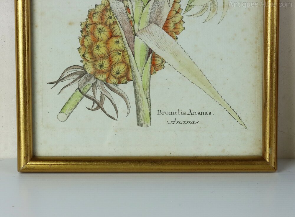 Condition: Dictamnus albus engraving is in good antique condition whereas Bromelia ananas engraving has quite a lot of foxing. The gilt wood frames are in good vintage condition, probably about 40 years old. The condition of the Bromelia engraving has been taken into account in the price.