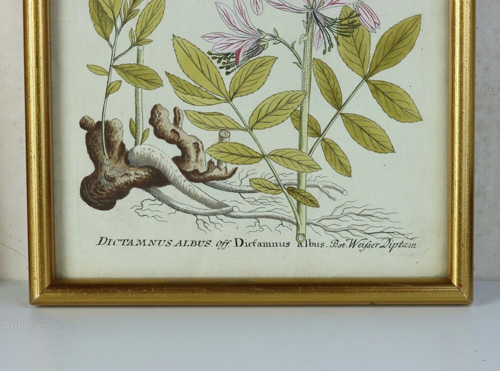 A pair of original hand-coloured copperplate engravings from Ferdinand Bernhard Vietz’s "Icones Plantarum", published between 1800 - 1822, presented in gilt frames & ready to hang.Plate 75 Dictamnus albus - also known as burning bush, dittany, gas plant or fraxinella