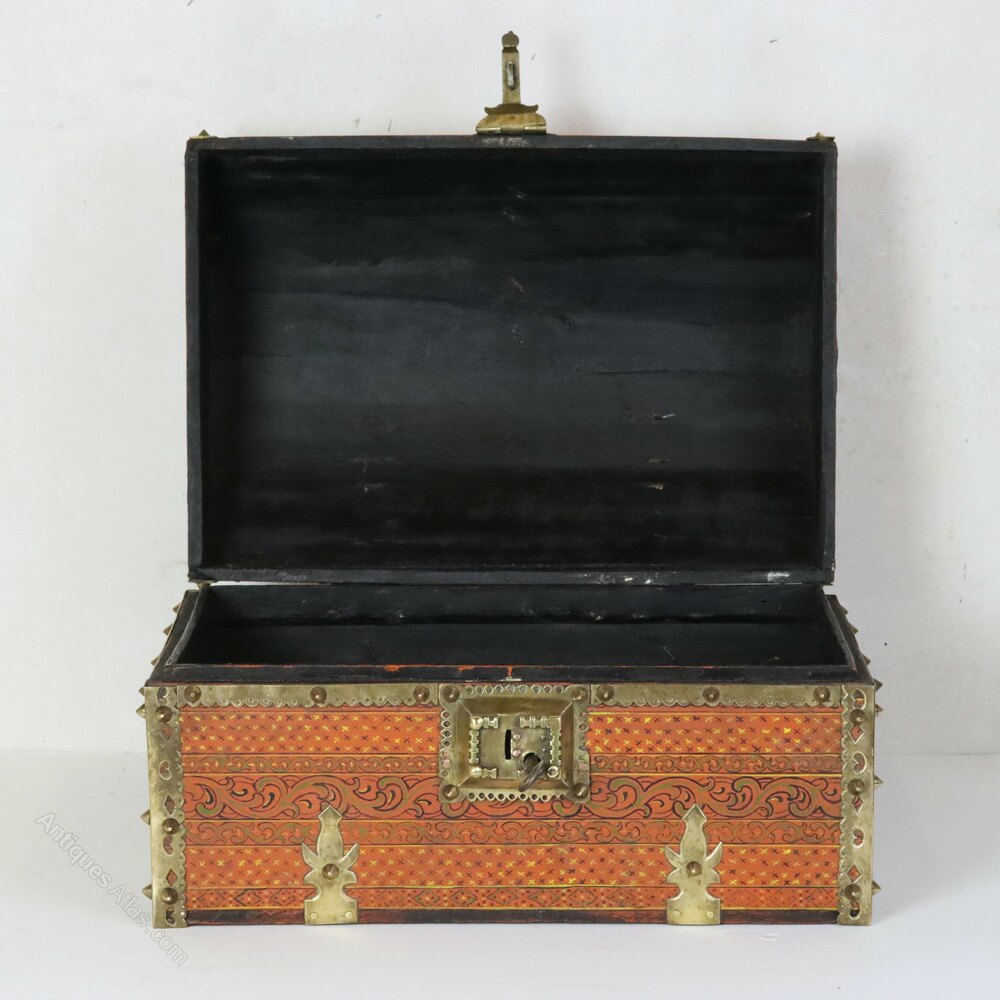 Indian Kerala Malabar Brass Mounted Painted Box