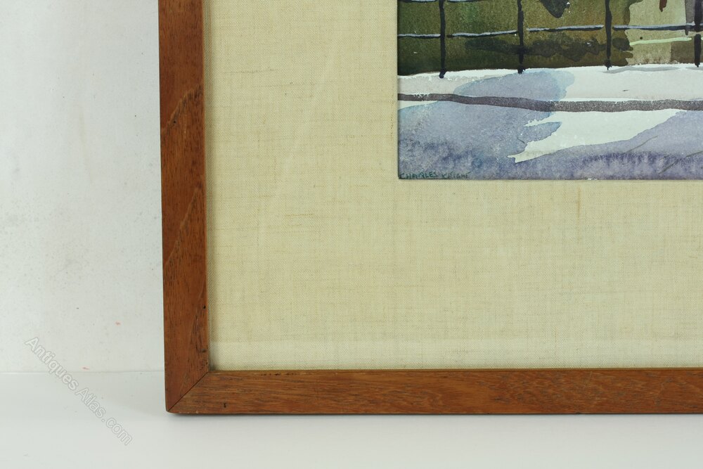 Condition: Fine vintage condition watercolour on paper within a linen-covered mount and a plain oak frame. The framing appears to be contemporary with the painting.