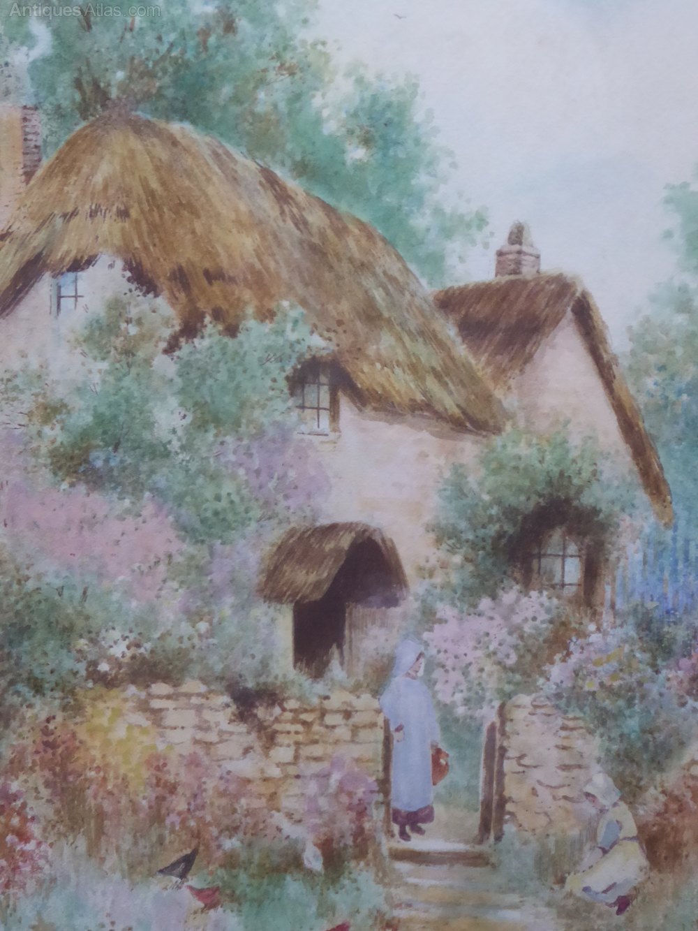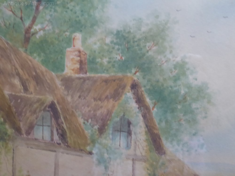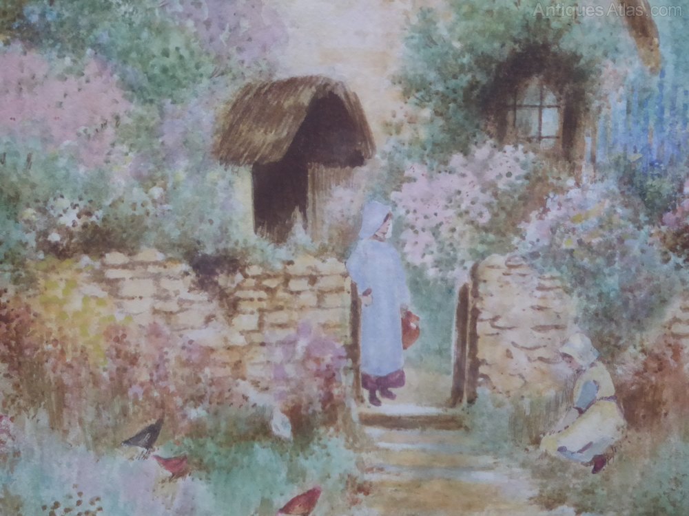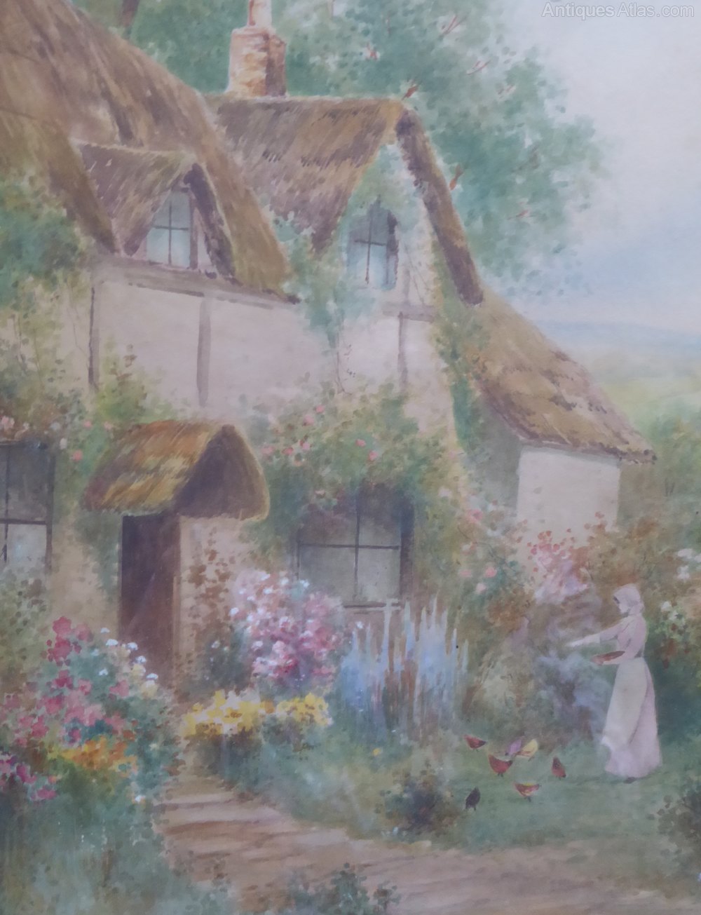 Victorian Pair Of Watercolours Floral Cottages