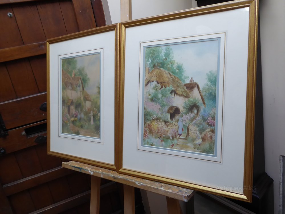 This is a Pair Of Watercolours Floral CottagesWonderfully painted
