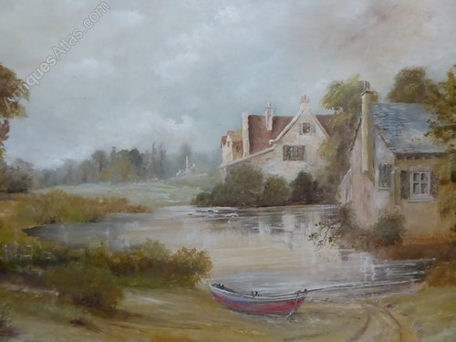 This is a Oil on board cottage by the riverWonderfully painted