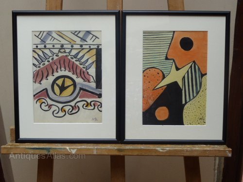 Pair of Watercolours 1950,s Listed Artist Maria Rajecka