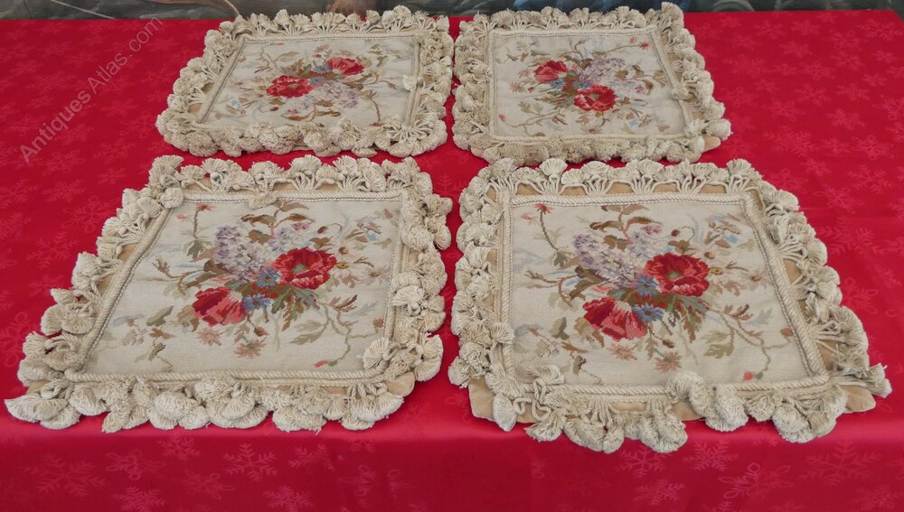 4 Aubusson floral cushion covers needlepoint