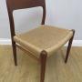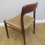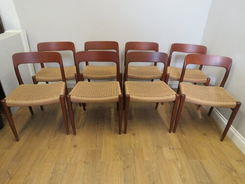 Set of 8 original teak and paper cord chairs designed by Niels Otto Moller, made in Denmark by the award winning, family run business J.L. Møllers Møbelfabrik. The 8 chairs are the classic No 75 design and bear the original mark "made in Denmark", please see the pictures.All the chairs are in wonderful condition still have their original paper cord seats.