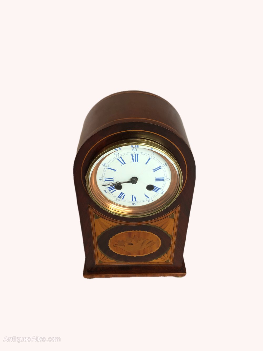 Victorian Inlaid Mahogany Striking Desk Clock