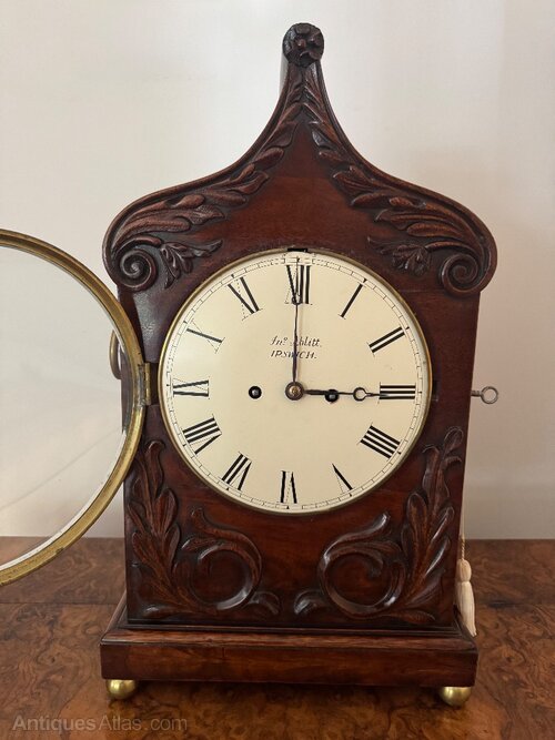 Outstanding quality antique Victorian mahogany bracket clock, having a quality antique Victorian mahogany bracket clock with a ogee top with beautiful scroll and leaf carving detail, having a large dial signed J Ablitt Ipswich with black Roman numerals and the original hands surrounded by a brass bezel, with an eight day fusee movement striking on a bell. Raised on brass feet.All clocks get serviced prior to delivery by a trusted horologist.