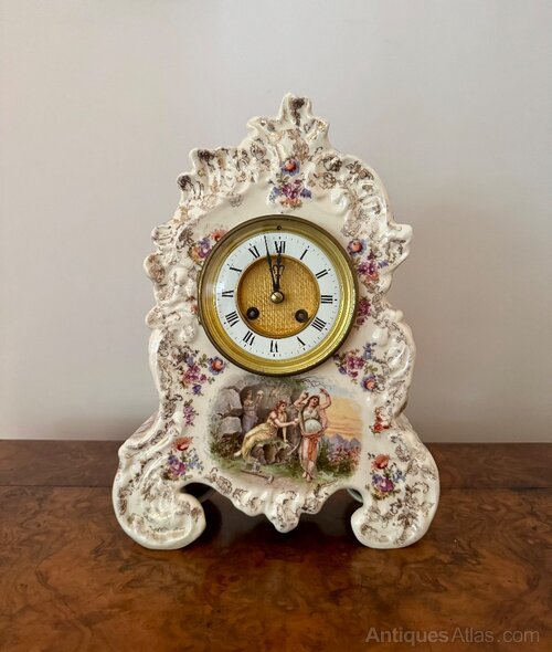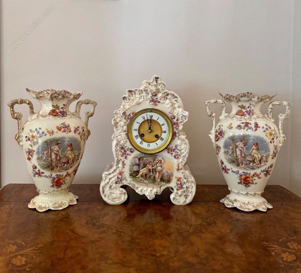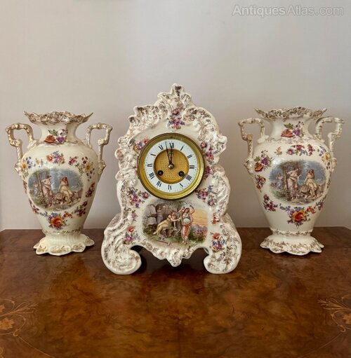 19th Century Porcelain Mantle Clock Garniture Set