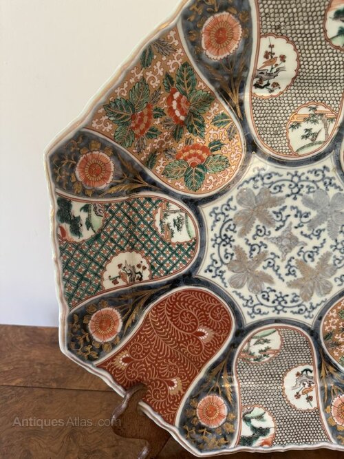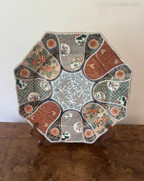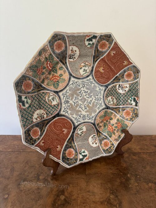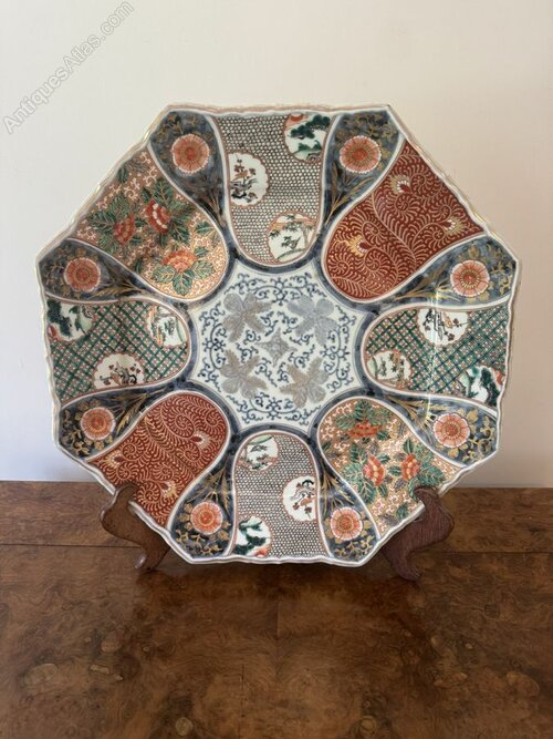 Outstanding quality antique 19th century Imari porcelain charger, having an outstanding quality antique imari charger of octagonal shape, fantastic detail decorated with panels of flowers, birds, scrolls & leaves in stunning gold, green, red, blue and white colours.H 6.5cm