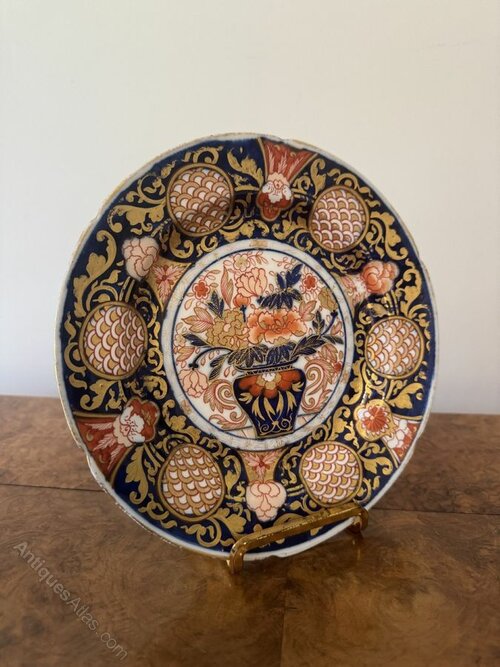 Fantastic quality set of four antique Japanese imari small plates, having a fantastic quality set of four antique Japanese imari plates highly decorated with a vase of flowers to the centre surrounded by a decorated border with gold scrolls on a deep blue ground hand painted in vibrant red, blue, gold and white colours.H 3cm