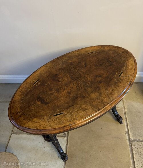 Victorian Burr Walnut Inlaid Oval Occasional Table