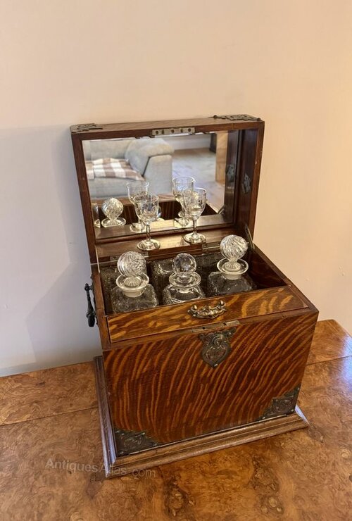 antique Victorian oak decanter and games box