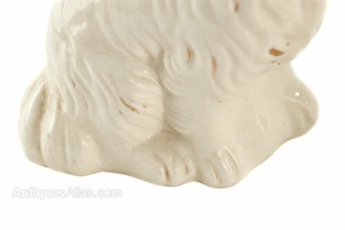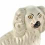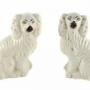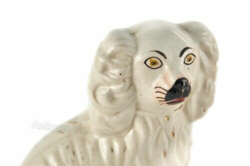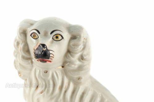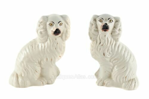 Pair Of Antique White Staffordshire Dogs in the seated position, hand painted faces and gilt decoration.H 16cm