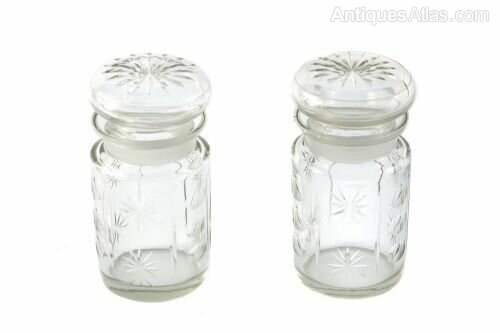 Pretty Pair of Antique Edwardian Cut Glass Jars