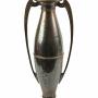 Pair Of Art Nouveau Bronze Vases having a shaped vase with engraved shaped handles raised on a circular baseH 40cm