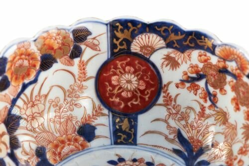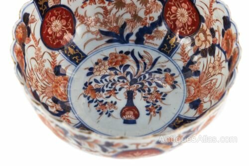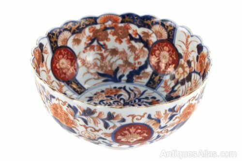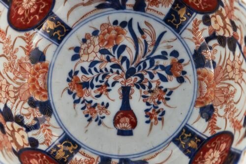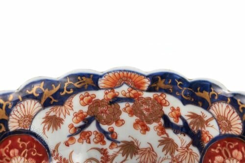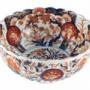 Antique Japanese Imari Bowl having wonderful hand painted red, blue, orange, white and gold colours with floral, leaves and tree decoration. Lovely colours, condition and quality.H 9.5cm