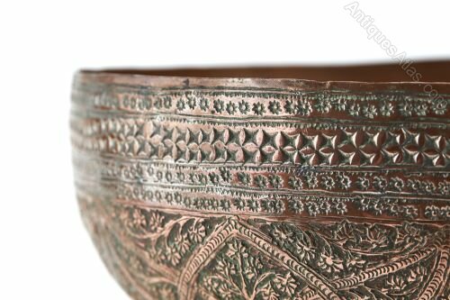 19th Century Indian Copper Bowl, having embossed decoration all over and standing on a shallow foot base.Unique Antiques By Emma Jade is a growing independent family run business, with years of experience within the antique trade. We pride ourselves in quality unique antiques at competitive prices. Customer experience is extremely important to us and we support all sales from start to finish.