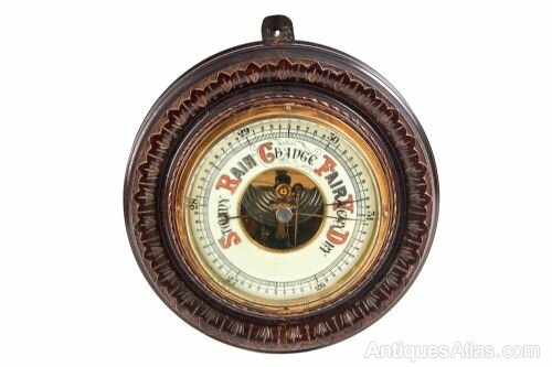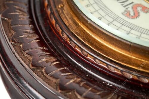 Antique Round Aneroid Wall Barometer having a lovely carved stained pine case and enamelled dial.Unique Antiques By Emma Jade is a growing independent family run business, with years of experience within the antique trade. We pride ourselves in quality unique antiques at competitive prices. Customer experience is extremely important to us and we support all sales from start to finish.