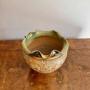 Attractive quality antique Royal Doulton Jardiniere, having a stunning quality antique Royal Doulton jardiniere with a wavy shaped green and brown rim decorated with gold floral detail above a bulbous shaped body, richly decorated with floral patterns with turquoise, white and gold blossoms.Stamped to the base as shown.