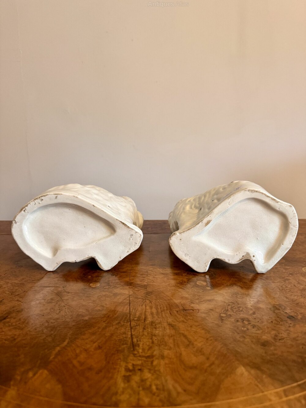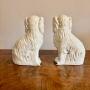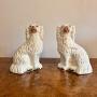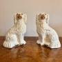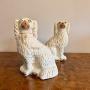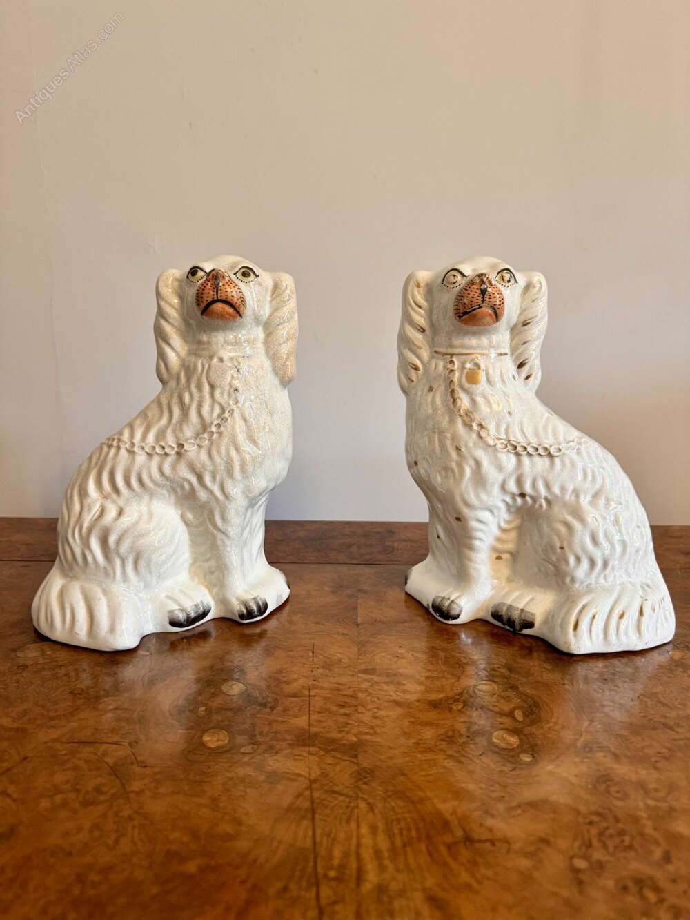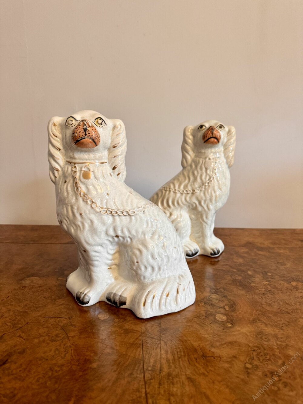 Wonderful pair of antique Victorian Staffordshire dogs, having a pair of seated spaniels in white and gold coloured coats with matching gold collars and padlocks.H 24cm