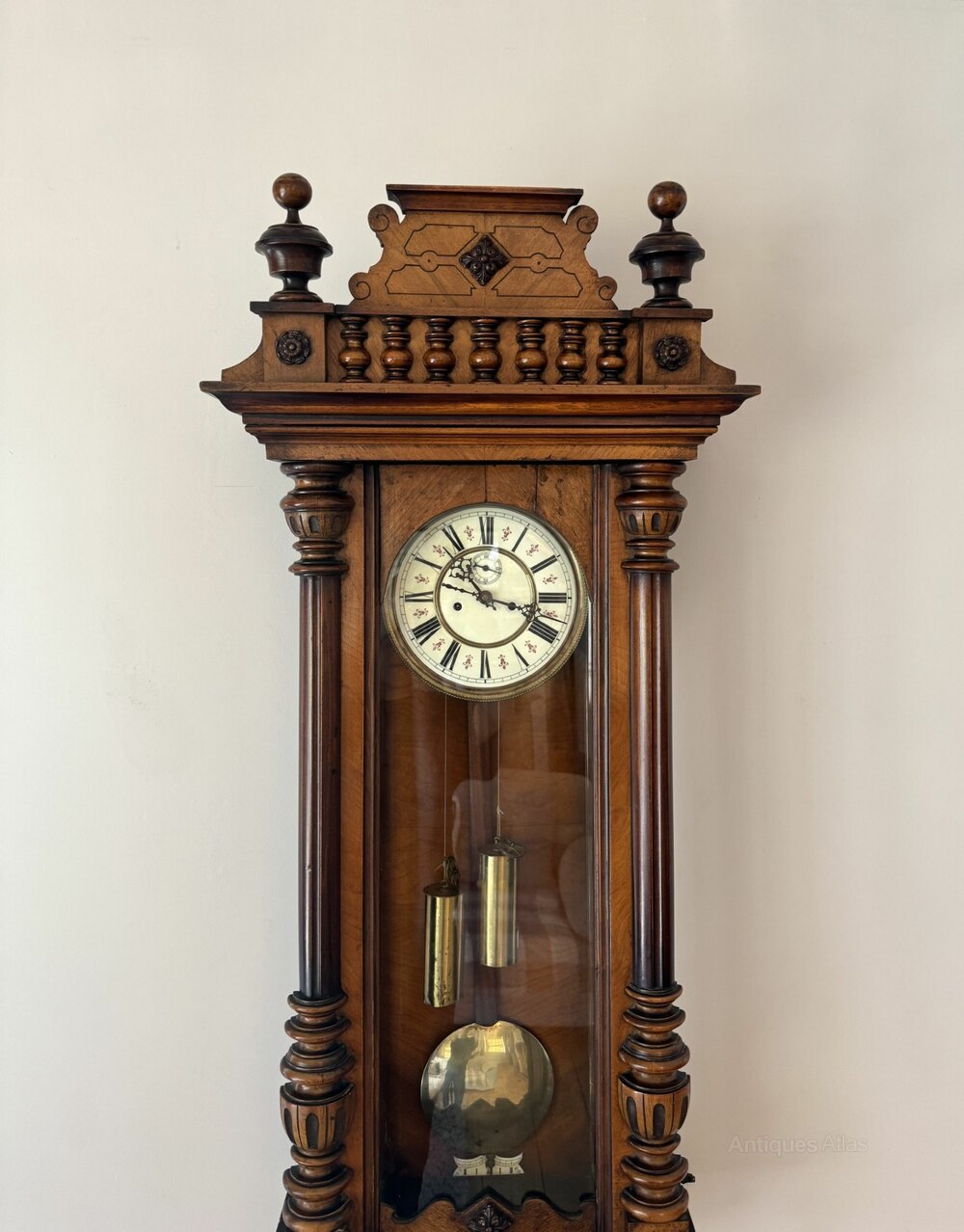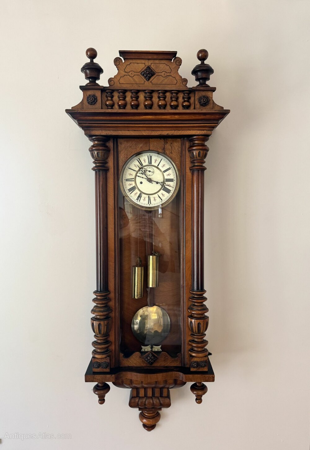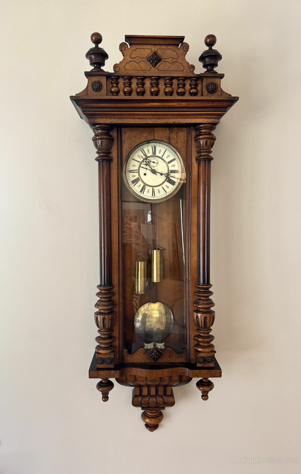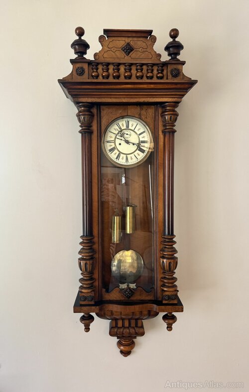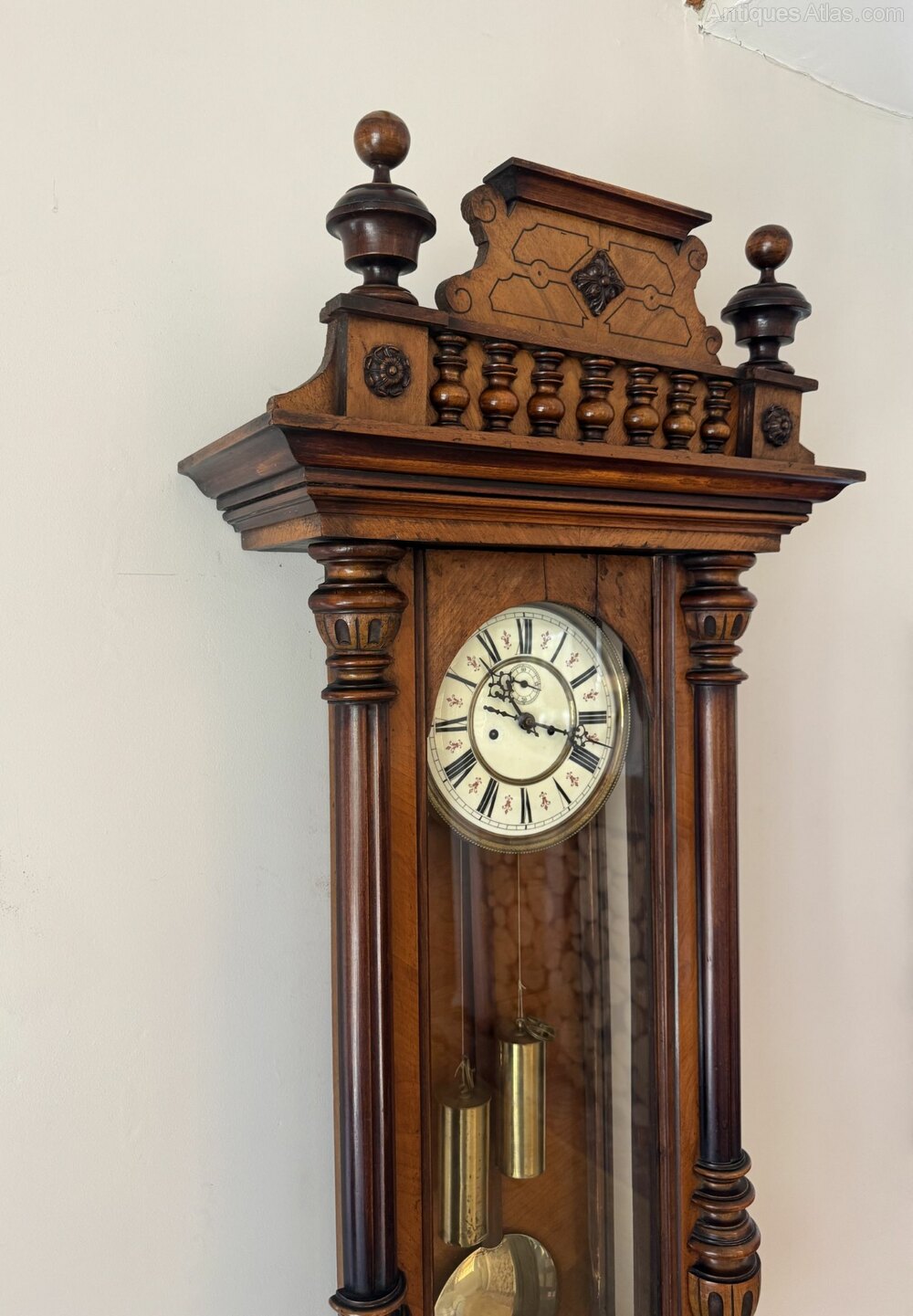 Victorian walnut double weight Vienna wall clock
