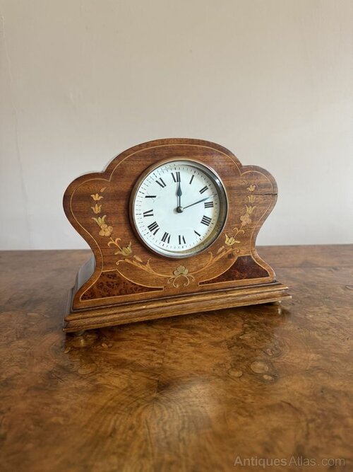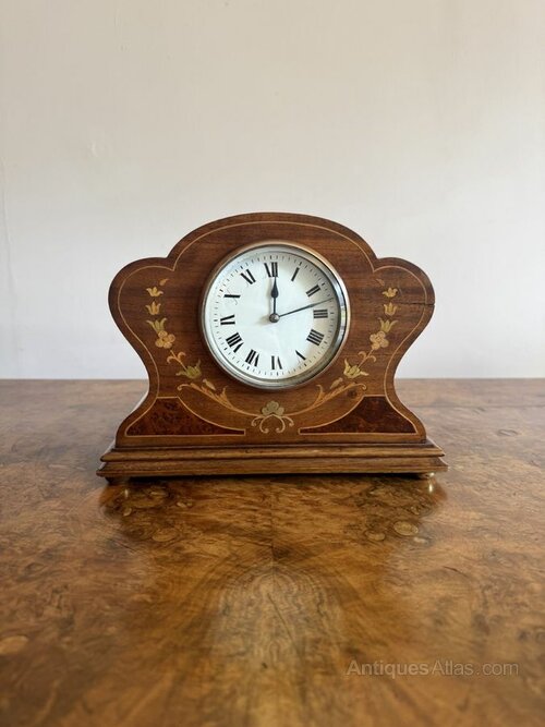 Antique Edwardian mahogany inlaid mantle clock