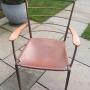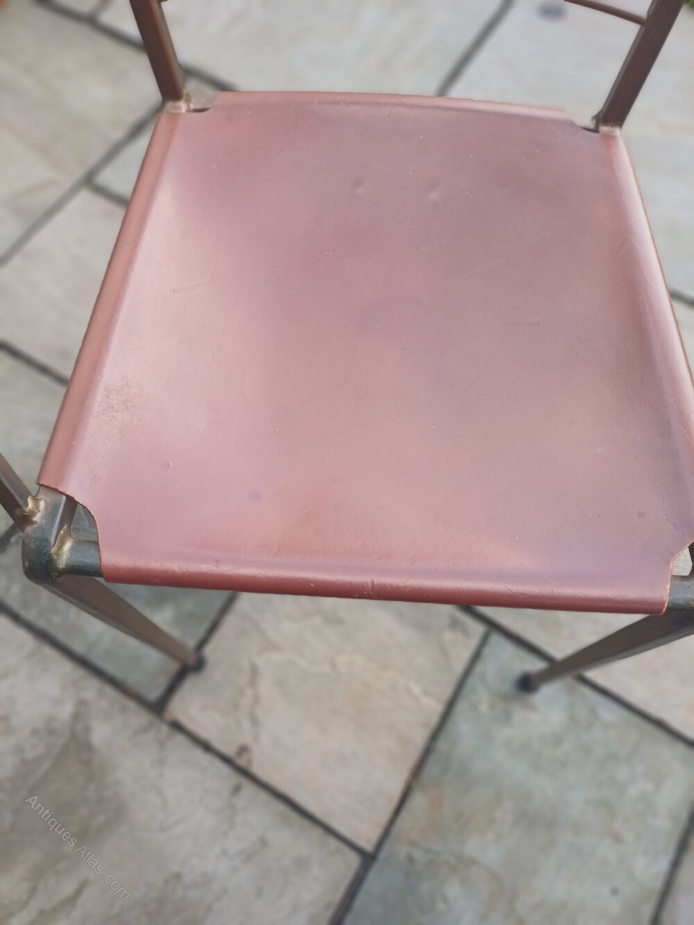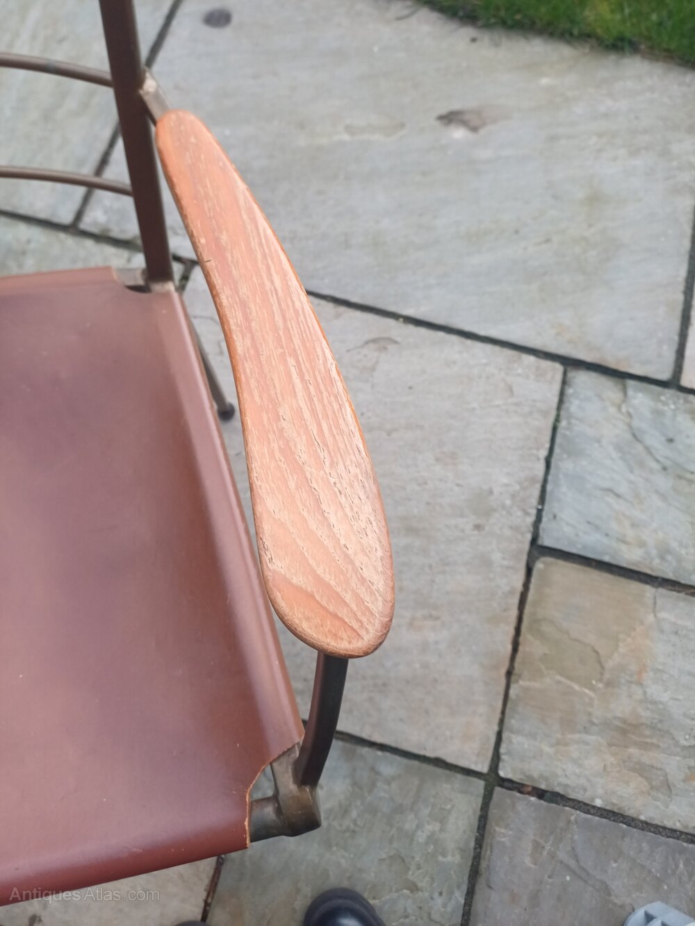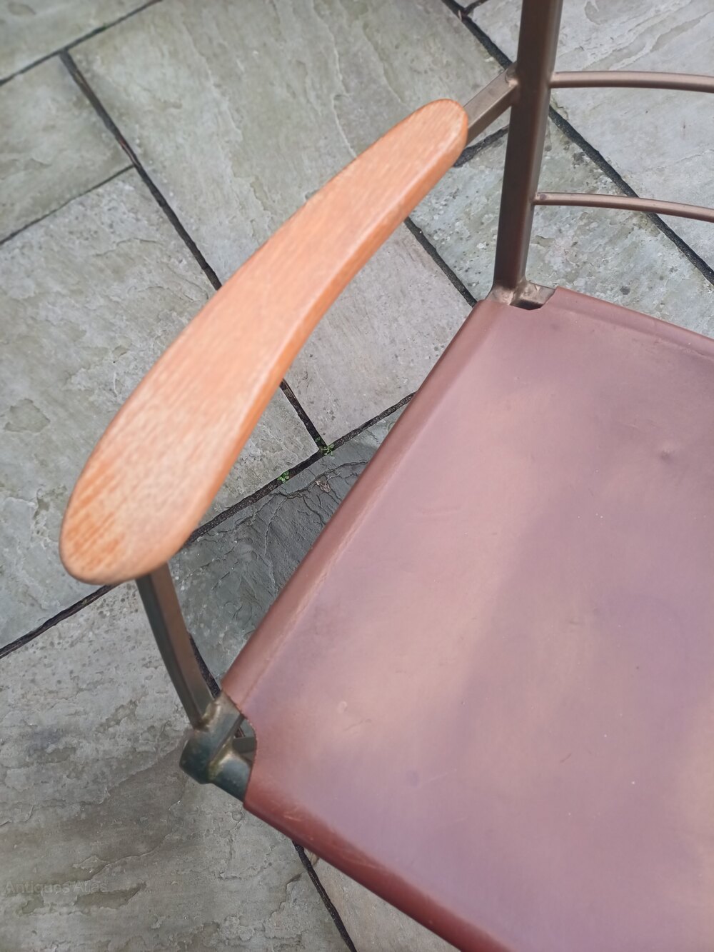 Attractive mid century Ladderax chair by Robert Heal Steel and tan leather occasional chair or desk chairDateRetro