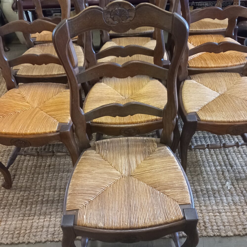 Quality well made country dining chairs in light Oak. we have 14 of these chairs plus 2 armchairs, and we will sell them in any number.they are in excellent condition no loose joints or repairs good sturdy chairs.