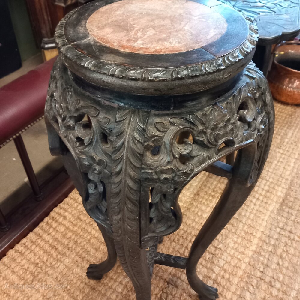 A very good late 19th century heavily carved hardwood marble top antique Chinese Vase stand.Distance Selling Regulations