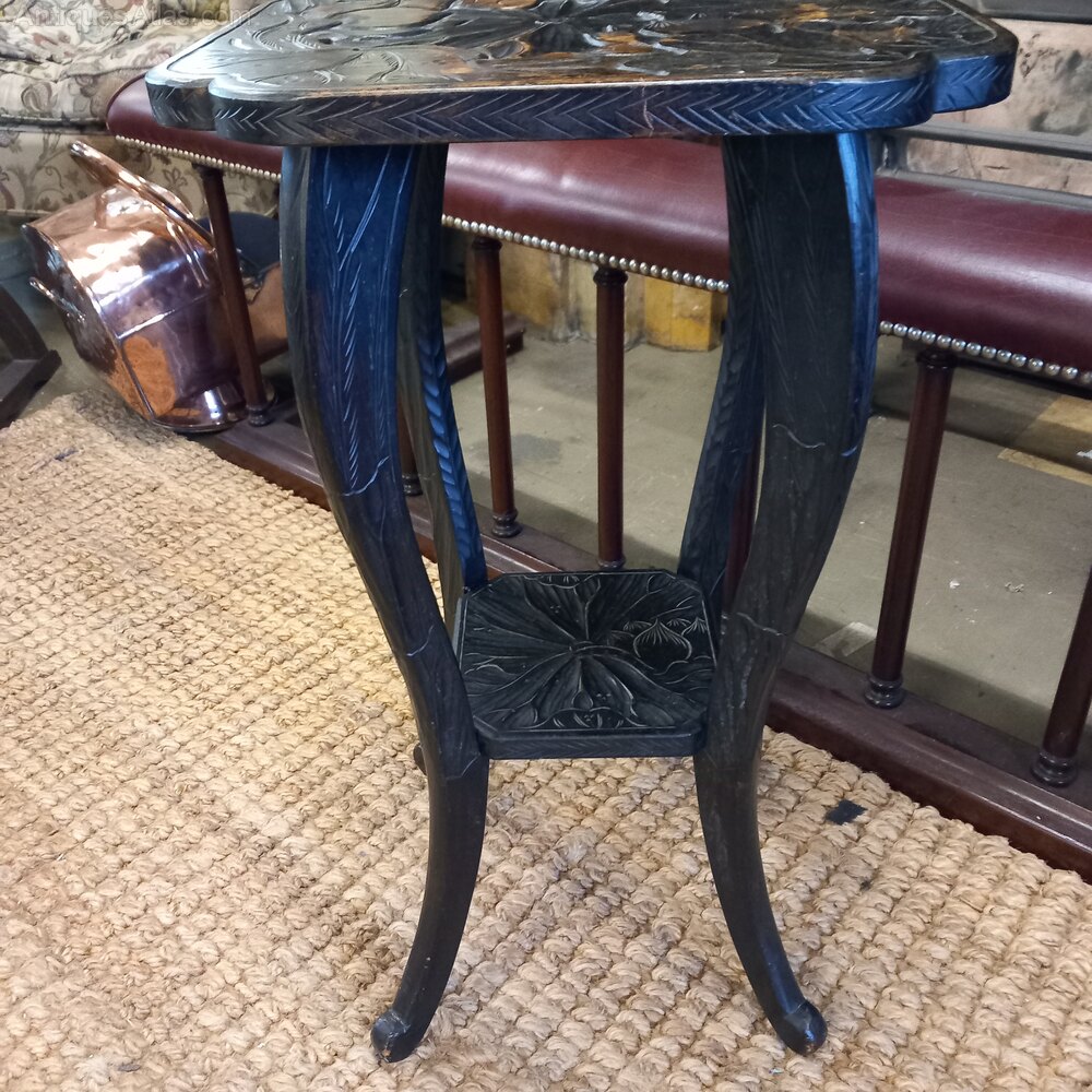 A lovely Arts and Crafts Liberty and Co Arts and Crafts occasional table, originally retailed by Liberty and Co of London, part of their exotic range.Having a well carved top and in excellent condition.Distance Selling Regulations