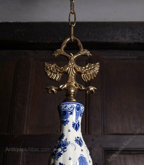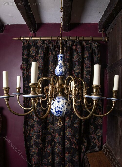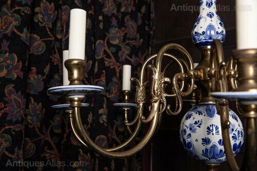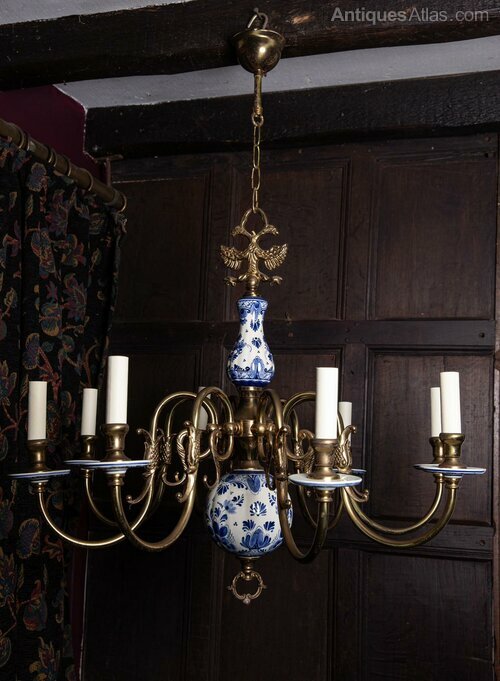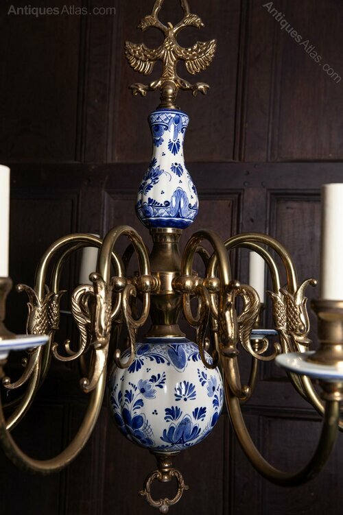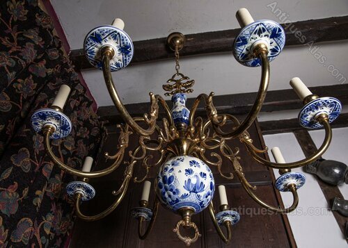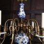 An excellent quality 8 light blue Delftware chandelier. A good large chandelier with lovely blue and white pottery. A very impressive chandelier.This chandelier will be fully rewired fitted with new bulb holders, new candle drips or candle tubes and pat tested.