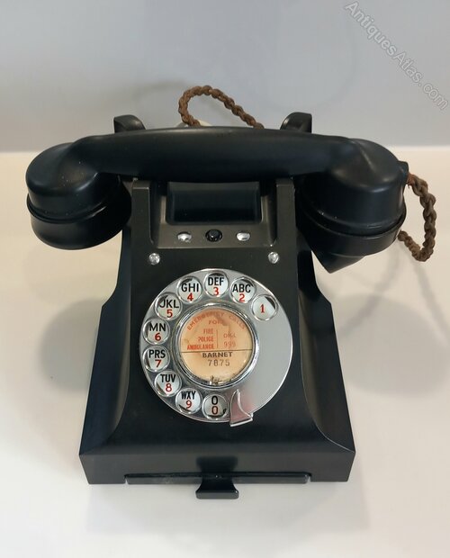 Black bakelite telephone GPO 328L with drawer.Untouched 1940s vintage tech. Slight chip to handset please see pictures. Untested.Not all stock is located at our premises so please contact us before visiting if you wish to see specific items. We will make a full refund of the purchase price (excluding any delivery costs) if you are not fully satisfied with your online purchase. At present we ship only to mainland UK and local delivery is free . Customers are of course able to collect from Plymouth or make their own arrangements for pick up by national or international couriers .