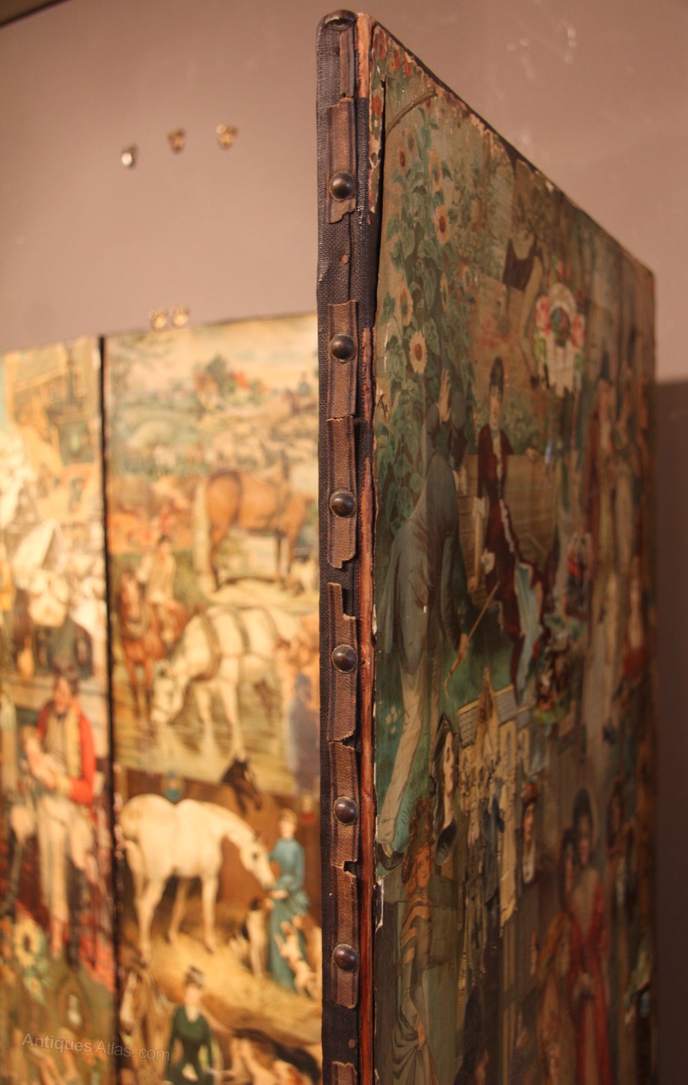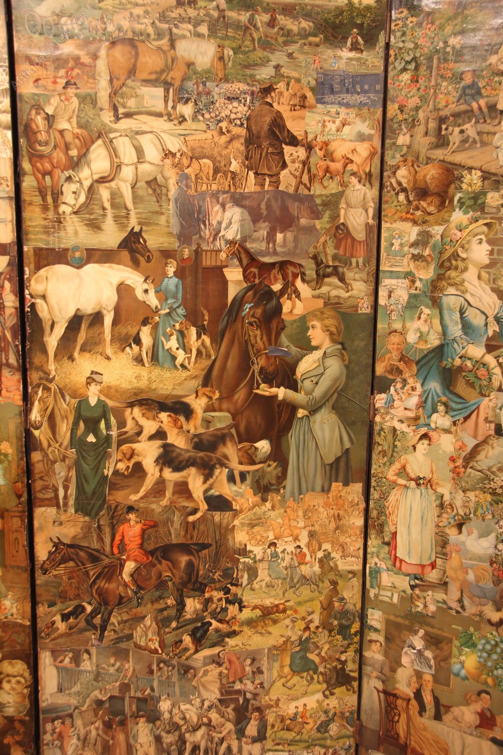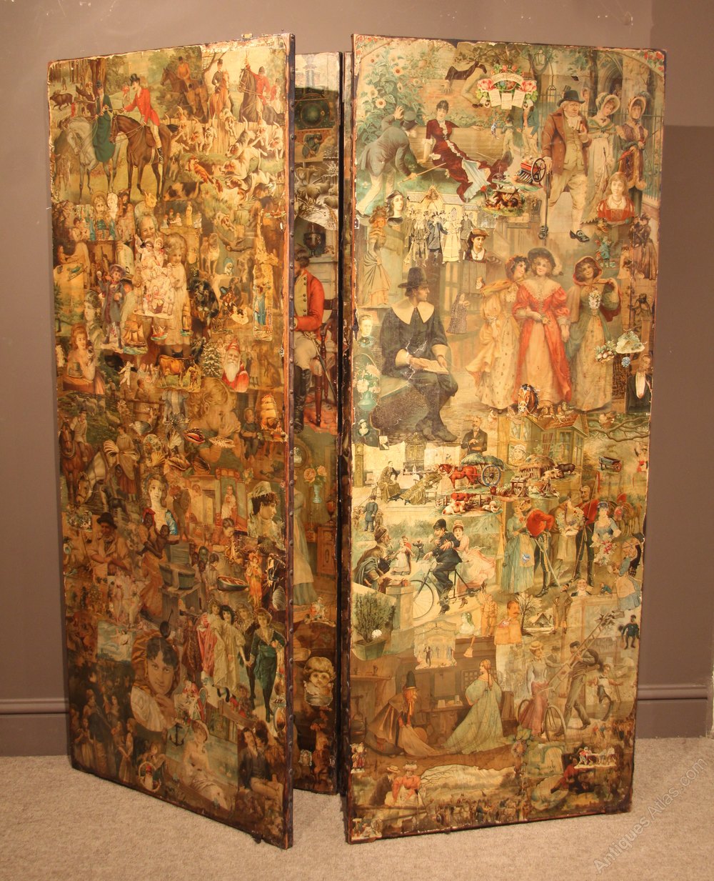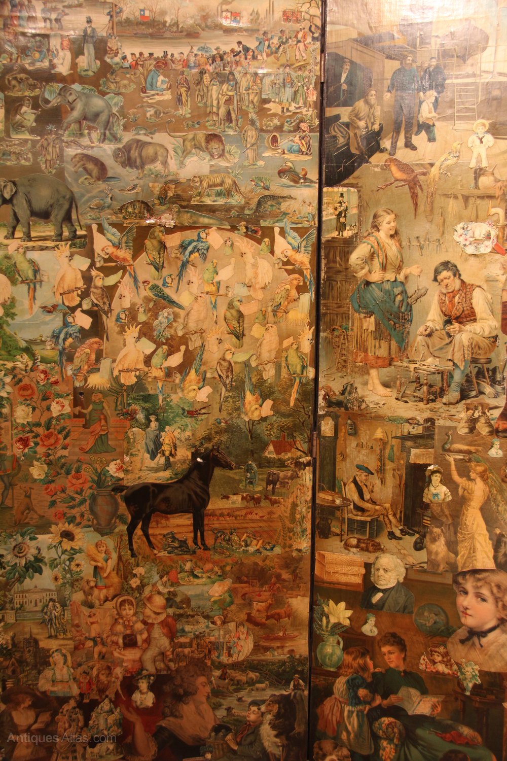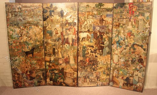 Late 19th century/early 20th century four fold decoupage screen.Dimensions