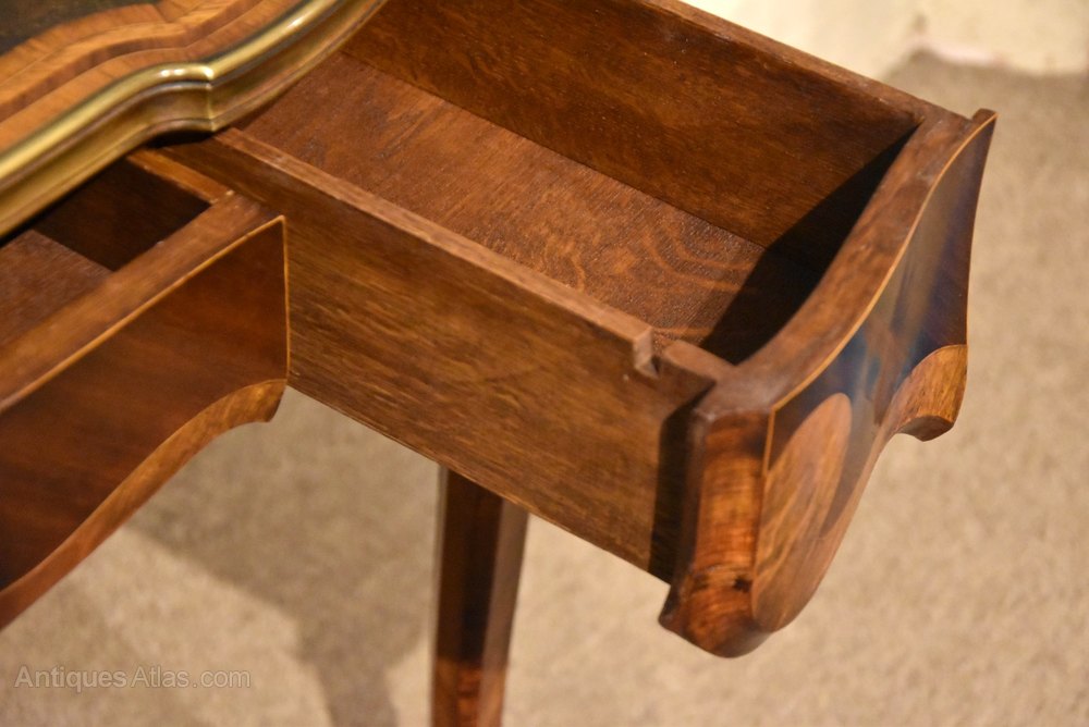 Early 20th Century Writing Table or Side Table by E Gallet of Paris. Stamped underneath. With two secret drawers on either side of the middle drawer so when its locked there can be no entry to the drawers either side. c1922Dimensions