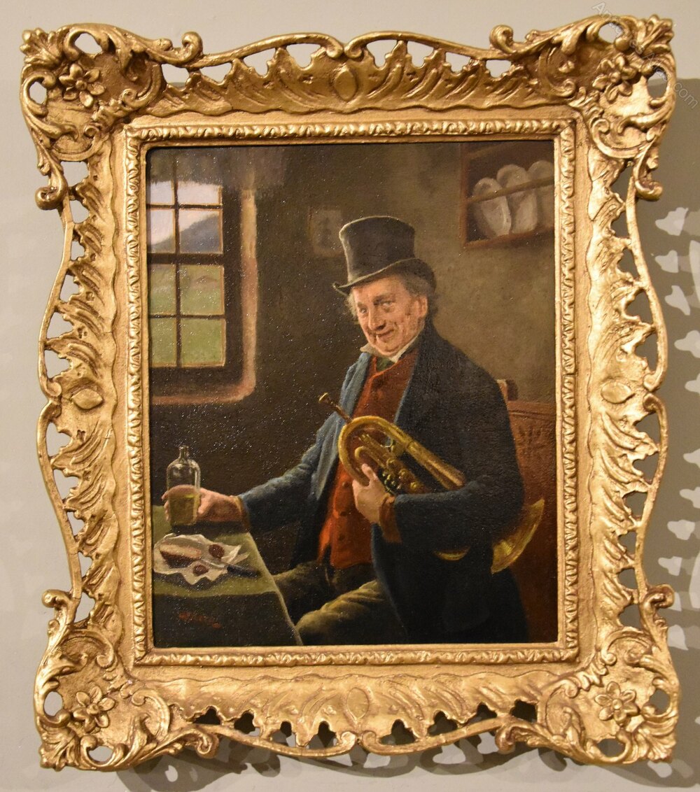 Oil Painting pair by Hermann Armin Kern "The trumpeter